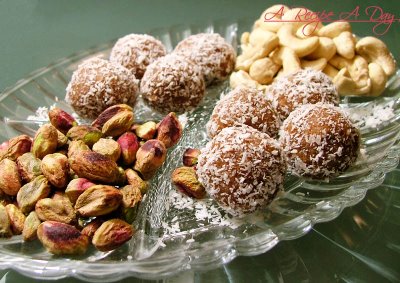 Make balls and roll them in coconut. Serve chilled.